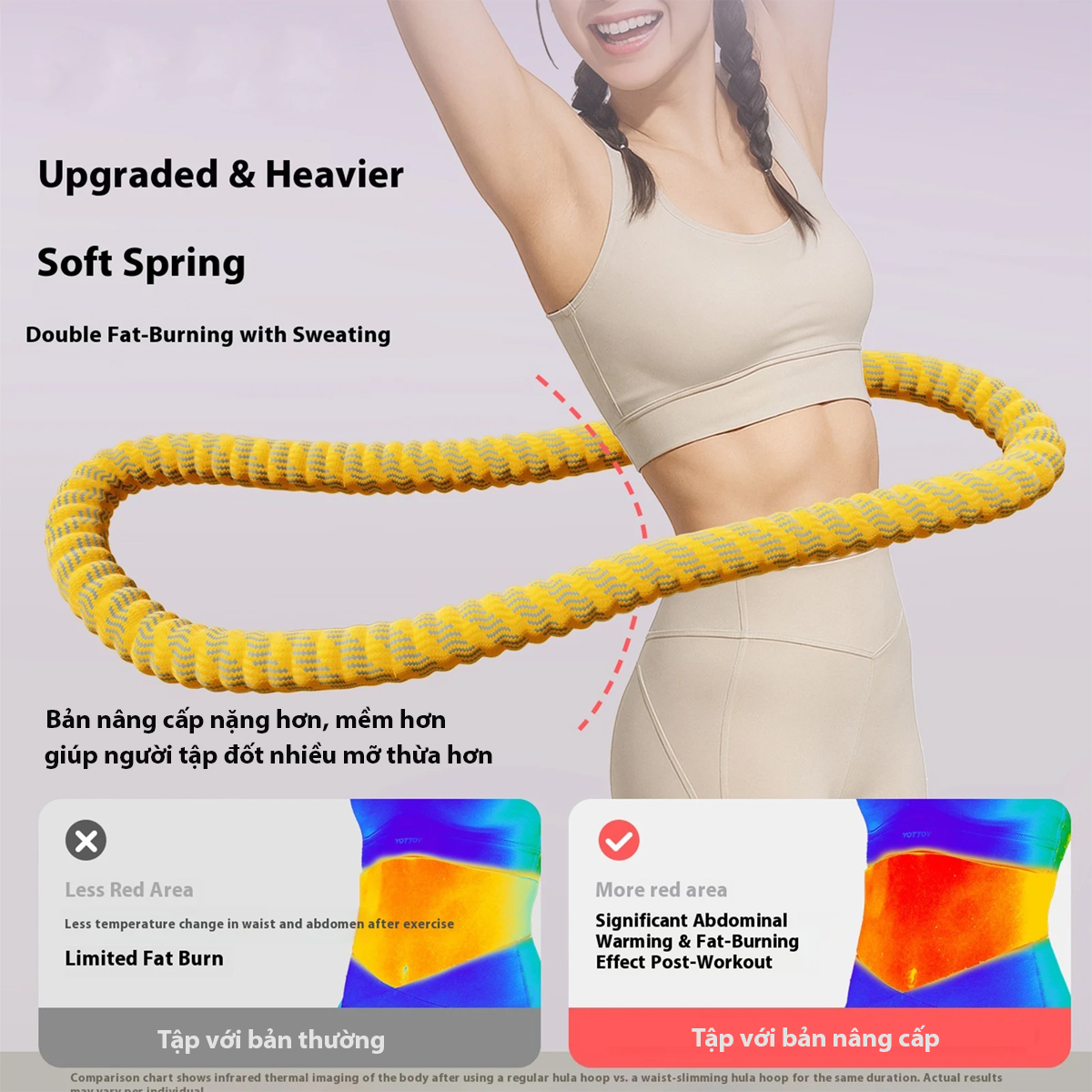 Ứng dụng vòng dây lắc eo hula hoop 3 lớp bản nâng cấp lõi lò xo tập giảm mỡ bụng, tập cơ hông kegel, tập yoga, tập gym đa năng