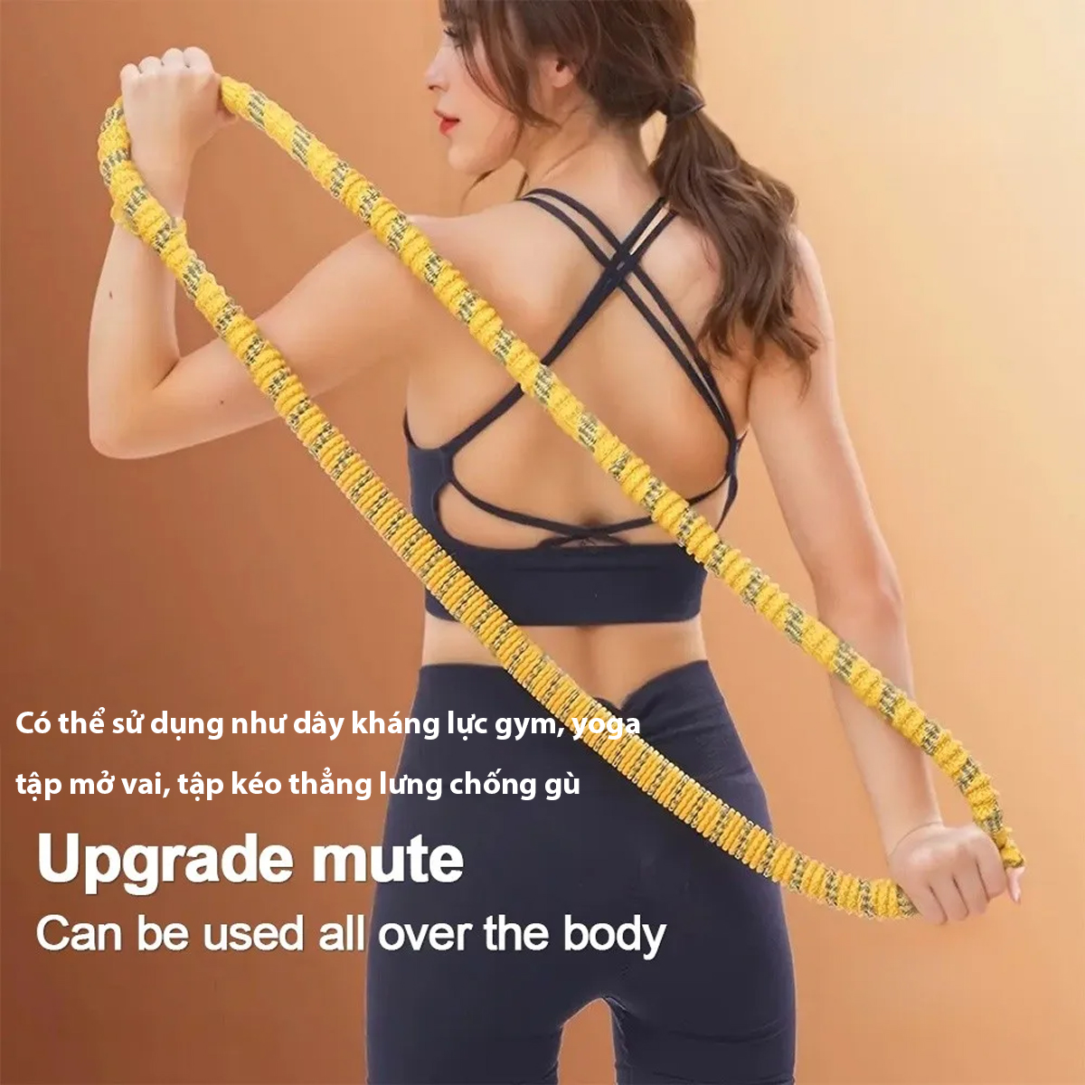 -Dùng như dây kháng lực tập gym: Hổ trợ tập tay vai, tập chân, tập mông đùi…