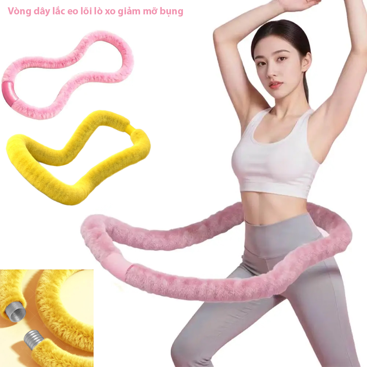 Đối tượng sử dụng vòng dây lắc eo lõi lò xo tập thể dục tại nhà giảm mỡ bụng giảm cân, rope hula hoop tập cơ hông kegel nhiều mức tạ
