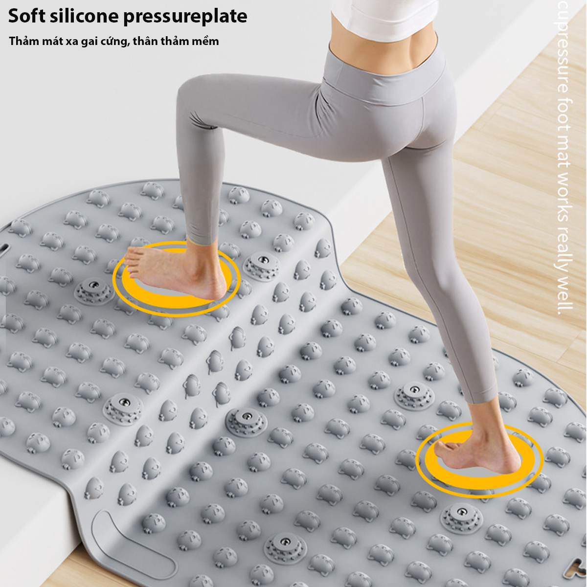 -Các gai thảm cứng giúp mát xa và bấm huyệt cho bàn chân khi tập luyện.